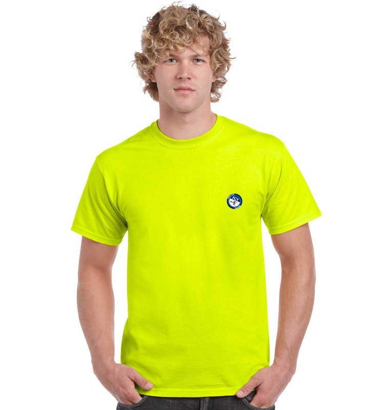 Címeres neonzöld környakú unisex póló