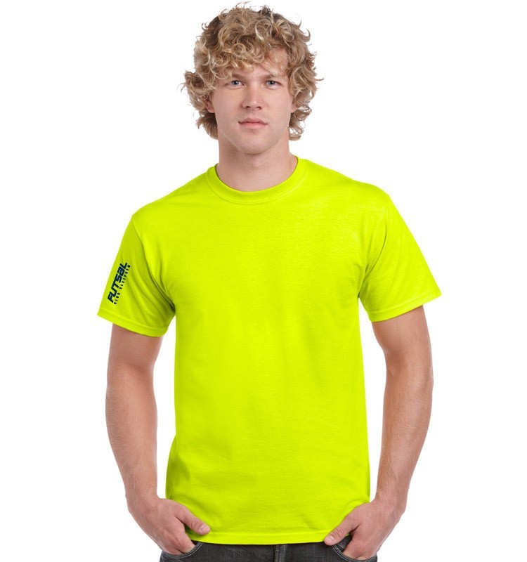 Feliratos neon zöld környakú unisex póló
