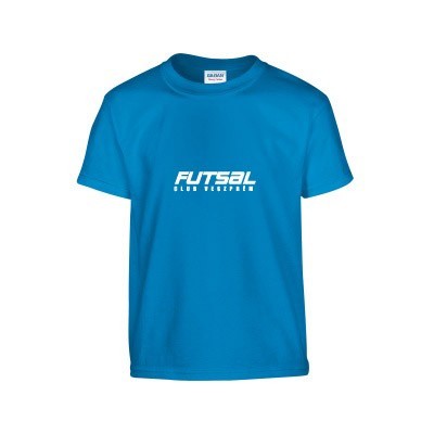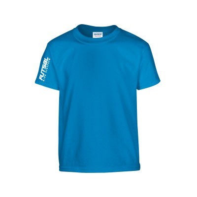 Feliratos zafír kék környakú unisex póló